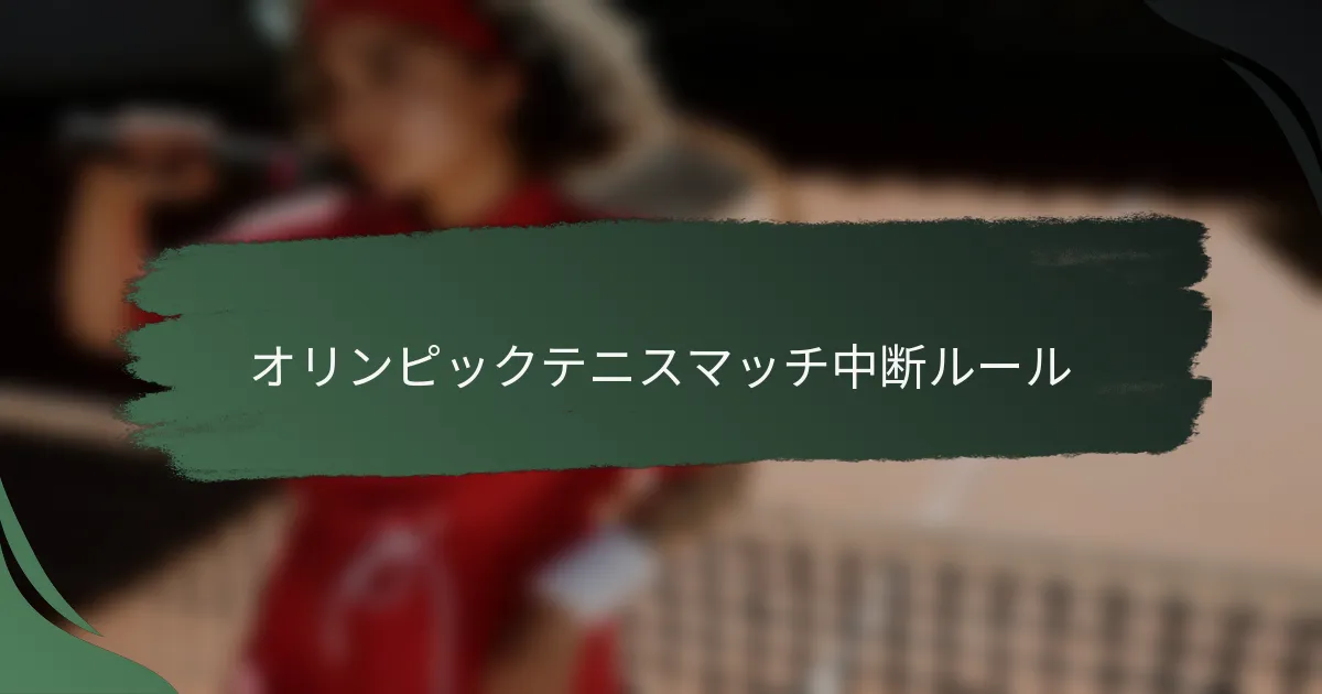 オリンピックのテニスマッチ中断ルールは、試合を一時停止できる条件を定めており、公平性と競技の誠実性を確保しています。これらのルールは、グランドスラムやATP/WTAトーナメントのルールとは異なり、天候や観客の関与といった独自の考慮事項に対応し、より柔軟性を持っています。中断はさまざまな要因から生じ、試合のダイナミクスや選手および観客の体験に影響を与える可能性があります。