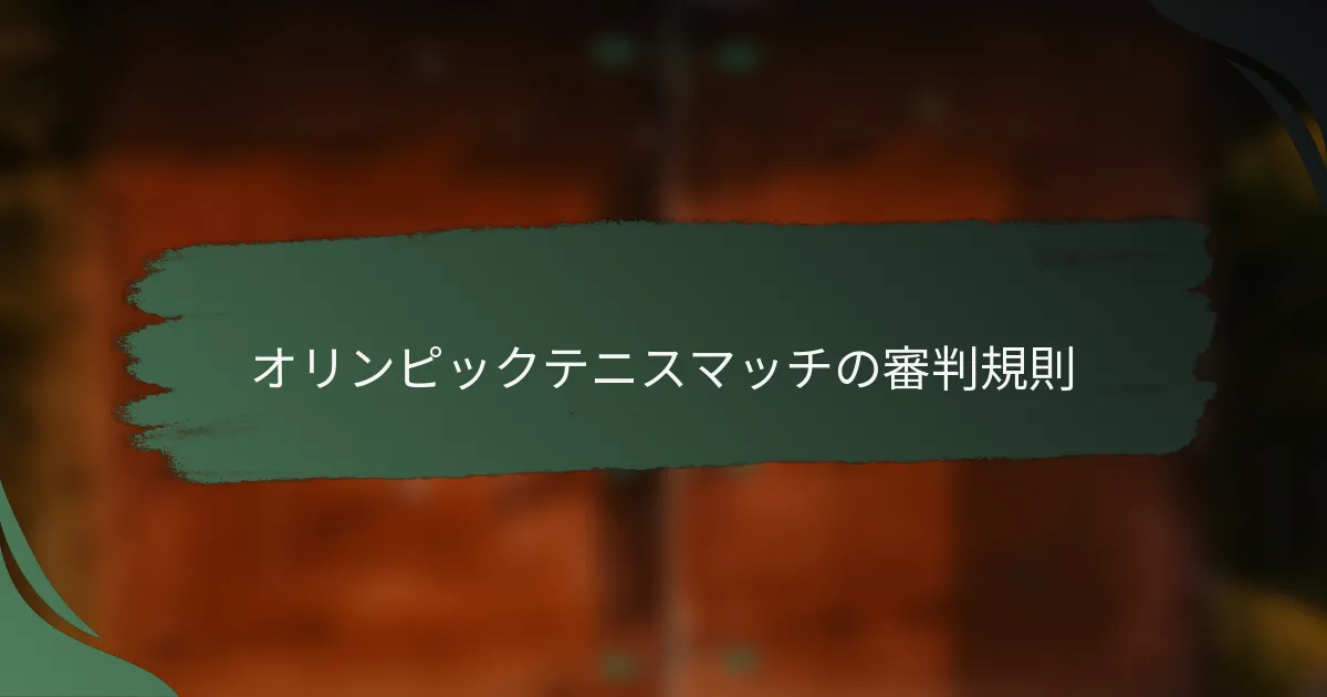 オリンピックのテニスでは、審判の役割がゲームの整合性を維持するために重要です。主要な審判には、チェアアンパイア、ラインジャッジ、トーナメントレフェリーが含まれます。それぞれが全体の審判プロセスに貢献する独自の責任を持っています。