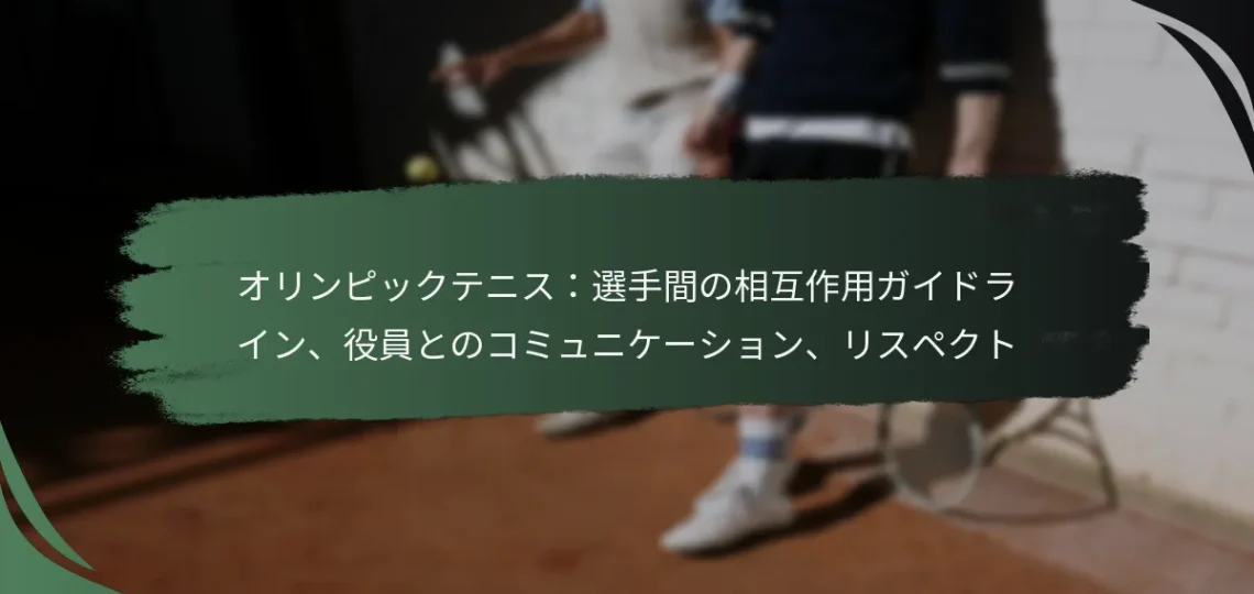 オリンピックテニスにおける選手の相互作用ガイドラインは、競技者、役員、観客の間での尊重、プロフェッショナリズム、スポーツマンシップを強調しています。これらのガイドラインを遵守することで、ポジティブな雰囲気が確保され、スポーツの誠実性が保たれます。