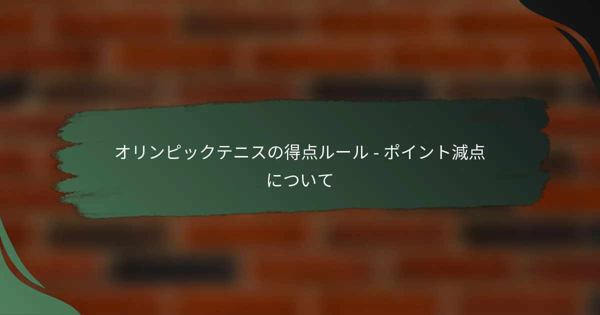 オリンピックテニスでは、選手が試合中に特定のルールに違反した場合にポイントの減点が発生します。これらの減点は試合の結果に大きく影響し、スコアに直接的な影響を与え、選手の勢いにも影響を及ぼす可能性があります。